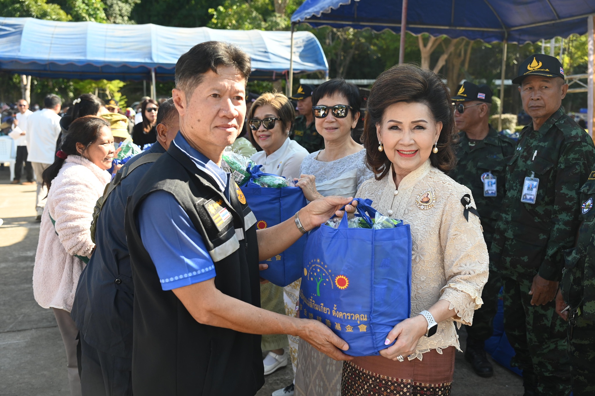 ภายในงานได้รับเกียรติจาก พล.ต.อ.ดร.มนตรี – คุณพัชระภรณ์ ยิ้มแย้ม ประธานกรรมการมูลนิธิดอยเวียงแก้ว เป็นผู้แทนรับมอบ พร้อมด้วย นายชูสวัสดิ์ สวัสดี นายอำเภอเชียงแสน และ นายวรายุทธ ค่อมบุญ นายอำเภอแม่สาย ร่วมรับมอบถุงยังชีพเพื่อนำไปกระจายความช่วยเหลือให้ถึงมือประชาชนในพื้นที่ต่อไป