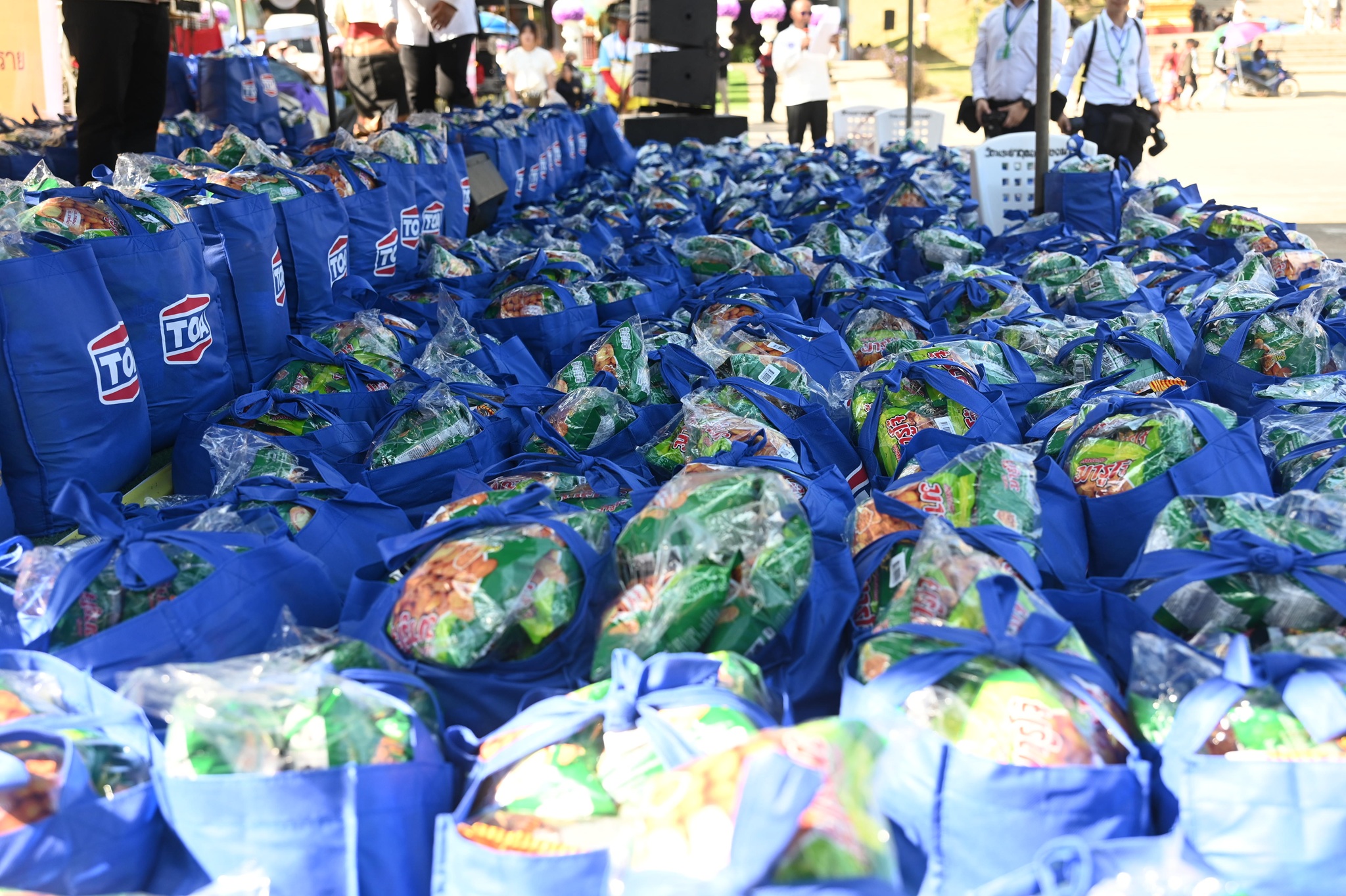 ซึ่งภายในประกอบด้วยสิ่งของอุปโภคบริโภคที่จำเป็นต่อ อาทิ ข้าวสารบรรจุ